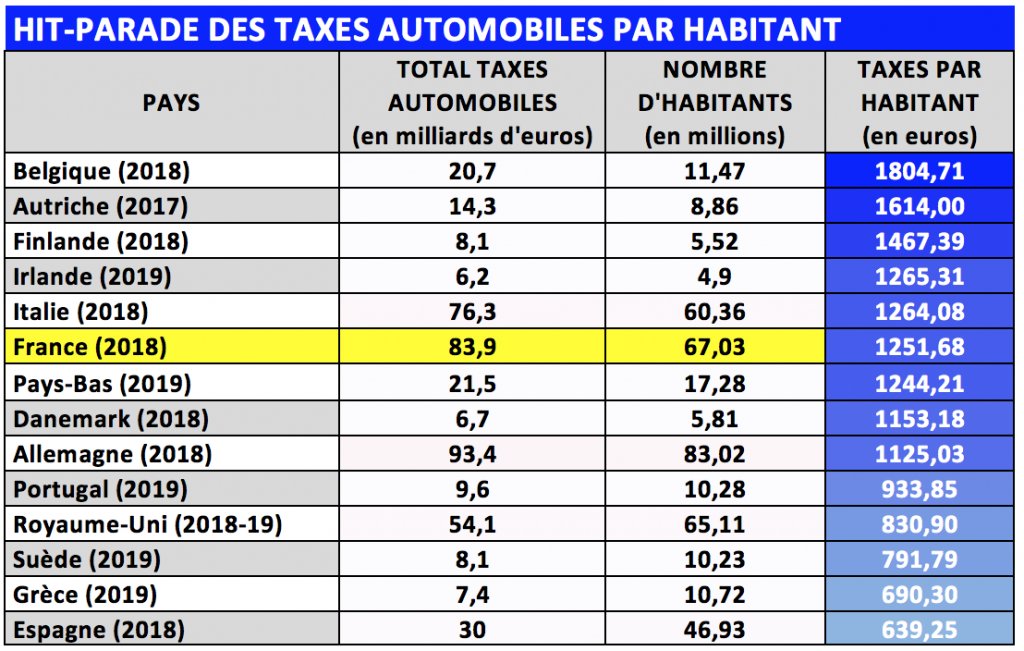 Cet écart est particulièrement notable si l’on observe la seule TVA appliquée à la vente de véhicules, à la réparation et aux pièces : en Allemagne, où elle n’est pourtant « que » de 19 %  » (20 % en France), cette taxe rapporte plus de 31 milliards d’euros, contre 18,5 milliards chez nous. D’accord, ils sont 83 millions d’habitants et nous ne sommes que 67 millions (soit 24 % de moins), mais eux ont acheté, l’an dernier, 3,44 millions de voitures neuves et nous, 2,21 millions, soit 55 % de moins… Sans compter que lorsque les Allemands achètent une VW Golf, nous nous offrons une Renault Clio plus petite, donc vendue moins cher et rapportant moins de TVA.