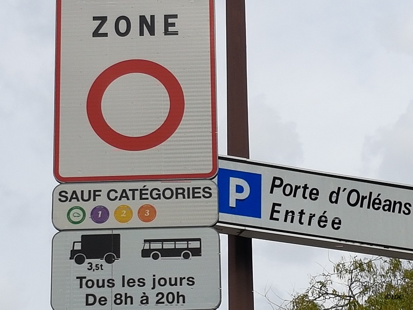 Dès l’entrée dans Paris (ici, Porte d’Orléans), le panneau blanc cerclé de rouge annonce la couleur : la voiture n’est pas la bienvenue. © LDC