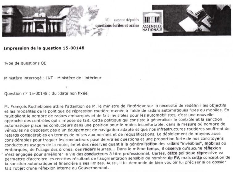 Plusieurs députés interpellent le gouvernement sur la question des radars invisibles. C’est notamment le cas du député François Rochebloine qui vise le cœur du problème :